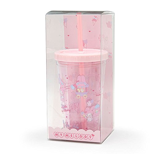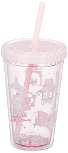 マイメロディ ストロー付きクリアコップ(いちご色の遊園地)