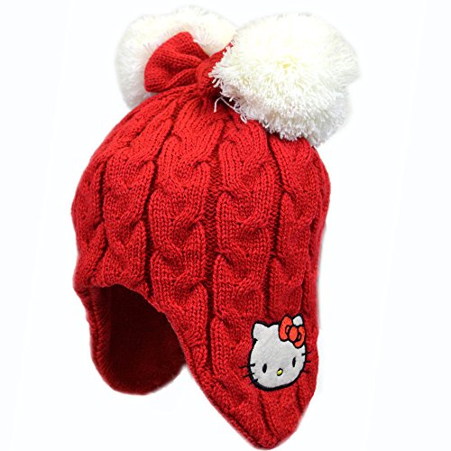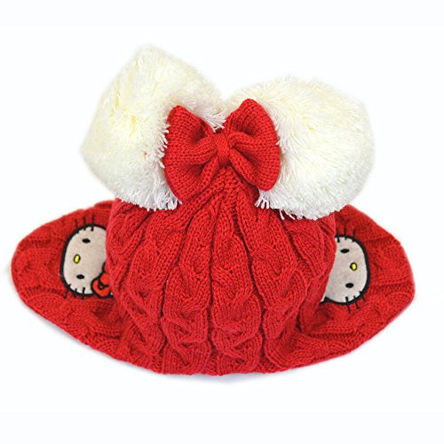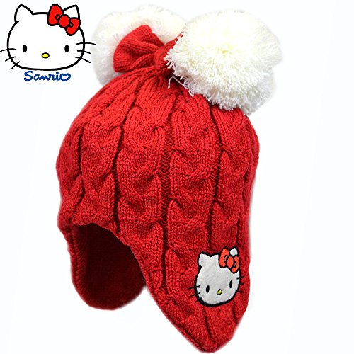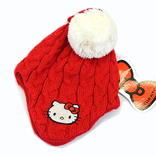 ハローキティ ぼんぼん付き 毛糸の帽子 男児 女児 サンリオ (ピンク46cm)
