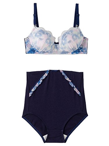 Rabbi ラビ マタニティ インナー 花柄 シフォン ブラトップ & ショーツ 授乳 ブラジャー パンツ 下着 産前 産後 L ネイビー 24418 24418130