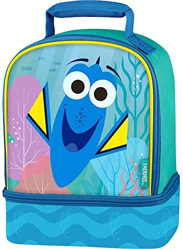 Thermos, Finding Dory lunch kit comes in 3 different styles standard, dual and round novelty. All lunch kits have 100% PVC free with Peva linings. Superior closed cell polyethylene foam insulation. Comfortable, padded carrying handle and detailed screen printed graphics. The dual compartment also has two separate compartments for easy storage.