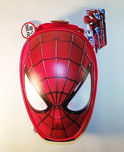 This lunch box is shaped like Spiderman's face. It measures 11 inches x 7-1/2 inches x 3 inches deep. Thermos insulated lunchbox helps keep lunches fresh. PVC free with a comfortable padded handle. Durable easy to clean fabric.