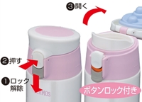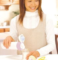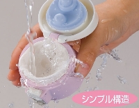 ![]() | 片手であけられるキャップ ボタンロック付きワンタッチ・オープンのせんユニットは、片手であけられ、ミルクづくりも手早くできる |