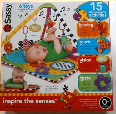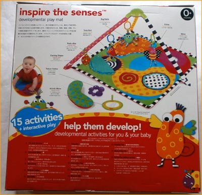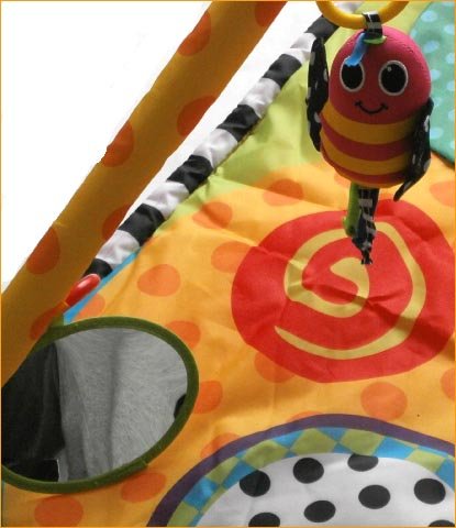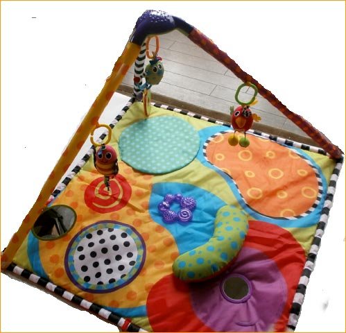 サッシーのプレーマットの新作です。お値ごろ価格が嬉しい。 色が綺麗でだいたんなので赤ちゃんが認識しやすく、興味をもって一人遊びを始めます 腹ばい おねんね お座りとどの姿勢でも遊べます。腹ばいようの枕もついています。 聴覚 触覚 視覚 味覚の発育をサポートいたします。 自分だけの空間をもつことで、自立心の発育や、自己認識に役立ちます。 組み立てはとっても簡単です 自己認識に役立つカガミや音の出るお人形。カシャカシャ音の出るクラッカー 歯固め うつ伏せ用枕と色んな部品がそろっています。 大きくなってお座り遊びの時間が増えたらアチを取り外してお遊びマットとしても使えます。 贈るかたのセンスがしのばれる素敵な商品ですので、出産祝いやギフトにもどうぞ サイズ70cmx70cm 高さ 55cm