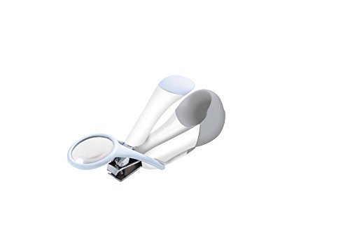 Fold away 4x magnifier to increase confidence and reduce eye strain while trimming babys tiny nails;Features precision, stainless steel blades, and ergonomic sure-grip shape;Officially licensed product of the American Red Cross;Sized and scaled for tiny nails;2 Count