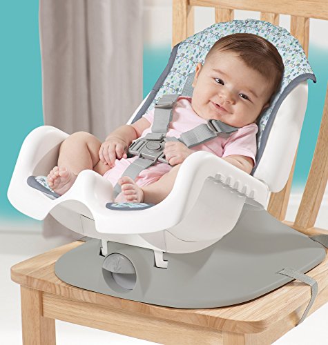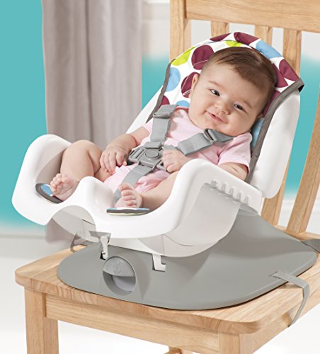 Grows with your child from birth to four years;Attaches to most standard adult chairs;Five-point harness;Five recline positions and two height adjustments;Sturdy, dishwasher-safe tray with three tray positions and cup holder