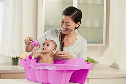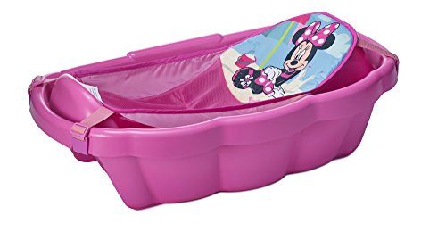 Mesh sling to keep newborns safe and secure;Padded headrest because who doesn't love extra support and comfort;Quick-empty drain plug;Comes with pour cup and Minnie Mouse squirt toy;Birth up to 25 pounds