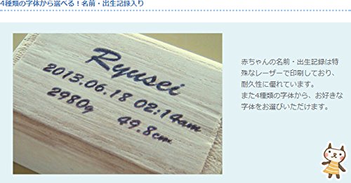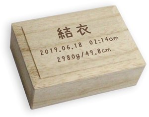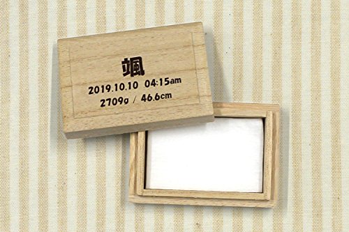- 特 徴 :角型のへその緒入れの表面にあかちゃんの名前・ 生年月日・時間・体重・身長を入れられます。