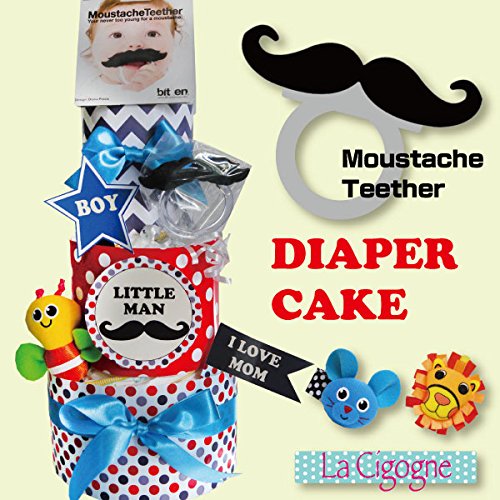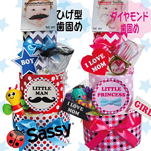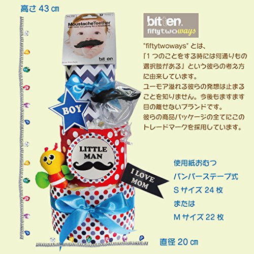出産祝い おむつケーキ男の子ヒゲ歯固め付き 3段