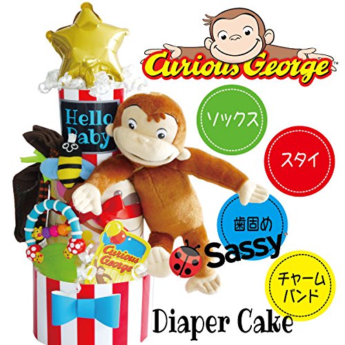 出産祝い男の子 おむつケーキ おさるのジョージ3段パンパースMサイズ