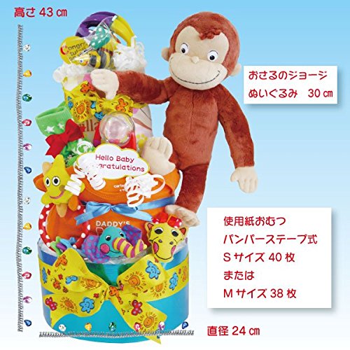 出産祝い男の子 おむつケーキ おさるのジョージ3段パンパースSサイズ