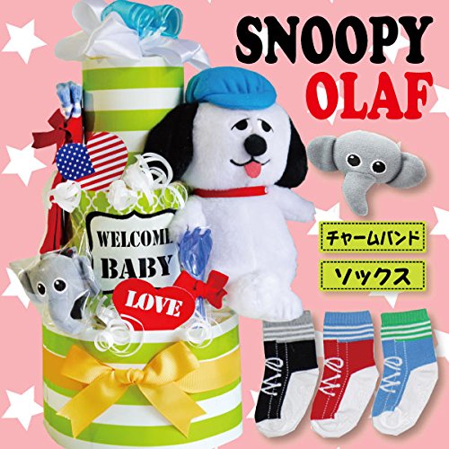 出産祝い男の子 おむつケーキ スヌーピー オラフ3段パンパースSサイズ