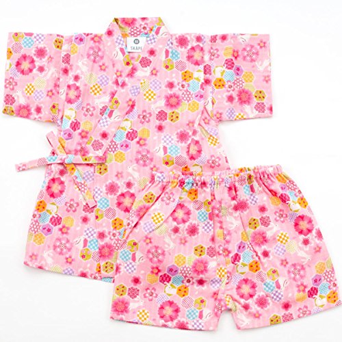 (ファンファン) FUN fun 甚平 スーツ 子供 キッズ ベビー ウサギ 中ピンク 90