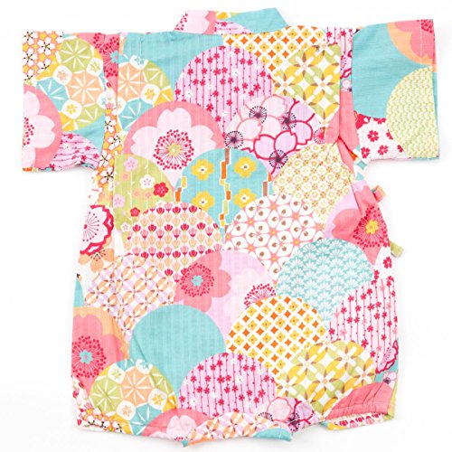 (ファンファン) FUN fun 甚平 ロンパース カバーオール ベビー 子供 和花 中ピンク 80