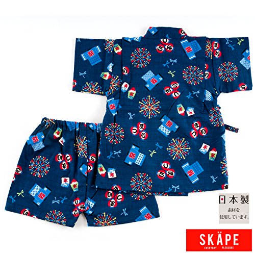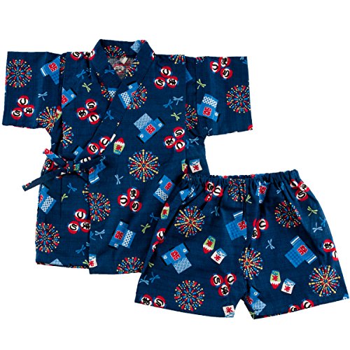 (ファンファン) 甚平 男の子 日本製生地 夏 花火 祭り 紺 80