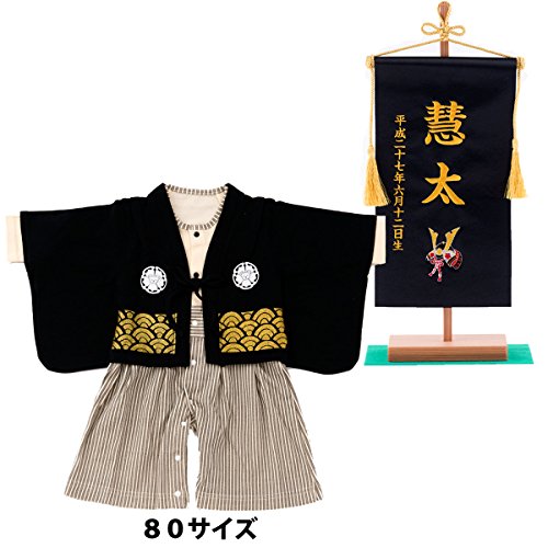 袴カバーオール ロンパース 名前旗 黒 ベビー キッズ 紋付 80サイズ