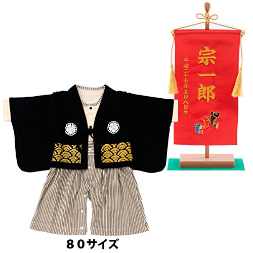 袴カバーオール ロンパース 名前旗 レッド ベビー キッズ 紋付 80サイズ