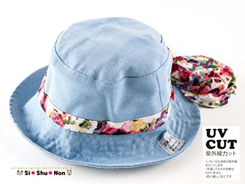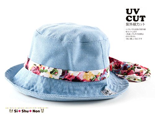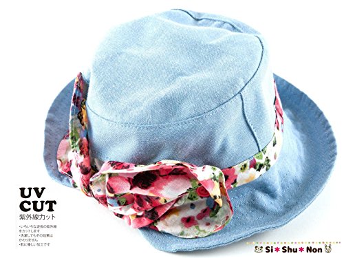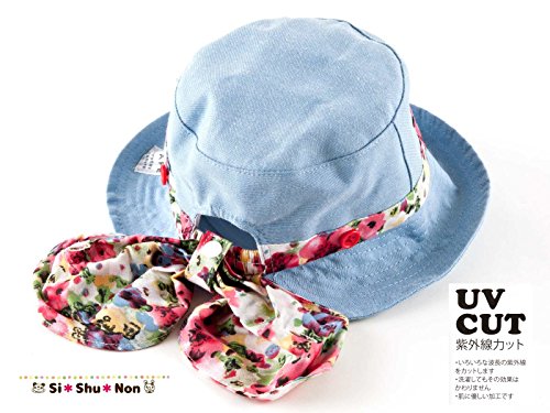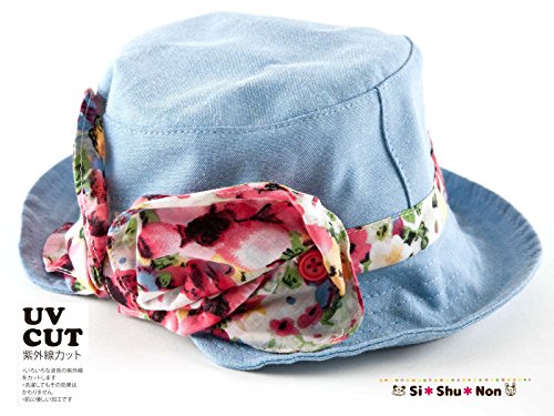 帽子 シシュノン UVカット 紫外線カット ダンガリー小花リボン帽子 50cm ブルー