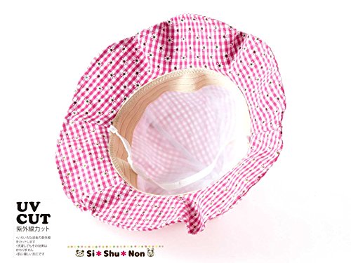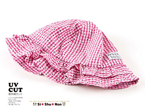 帽子 シシュノン UVカット 紫外線カット チェツク花リボン帽子 50cm ピンク