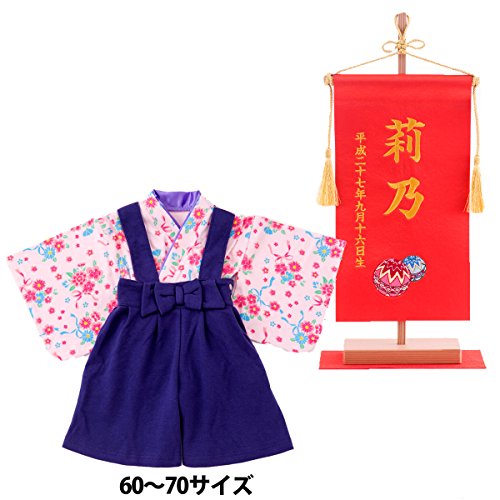 袴カバーオール ロンパース 名前旗 レッド パープルサスペンダーセット 60~70サイズ