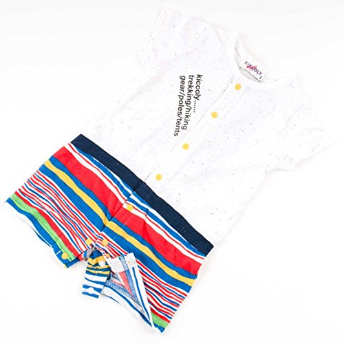 変わりボーダーとロゴプリントがおしゃれなキッコリーロンパース