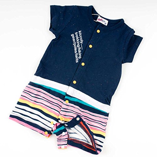変わりボーダーとロゴプリントがおしゃれなキッコリーロンパース