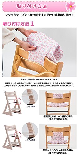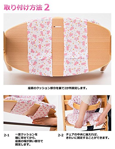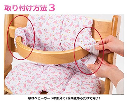 背もたれ・座面に2箇所・ベビーガードの左右2箇所を留めると、お子様では簡単に取れず、ズレ落ちしないクッションチェアーが完成!