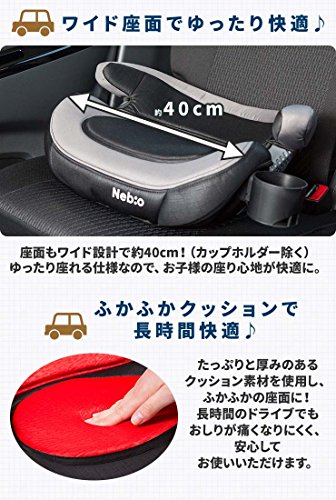 【ジュニアシート クッション性】ワイドな座面のブースターシート カップホルダー付き 洗濯機で洗えるカバー 4歳頃~12歳頃 体重条件:15kg~36kg ロングユース コンパクト 省スペース neb:o 色:グレー