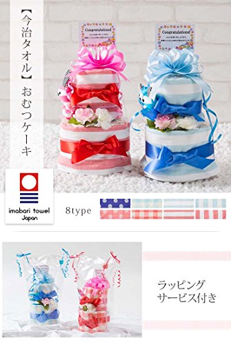 肌触りが優しく吸水性も高い、赤ちゃん使いにぴったりの今治タオルがセットになったおむつケーキです。