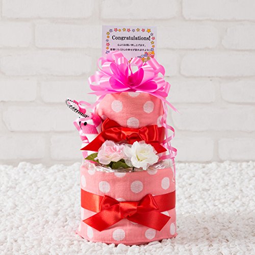 【おむつケーキ 今治タオル 男の子 女の子 出産祝い】 きっと喜ばれる今治タオル入! おむつケーキ 今治ウォッシュタオル ラッピング付き ご出産祝いに最適 おむつパンパース(Sサイズ-テープ) 柄:ドット 色:ピンク