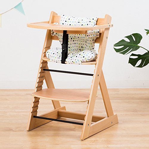 【ベビーチェア テーブル付き ハイチェア 高さ調節 木製 専用クッション付き】こどもと一緒に成長するチェア 高さ調節可能! 安全ベルト付き ふかふかクッションセット チェア色:小水玉ブルー クッション色/柄:ナチュラル