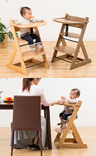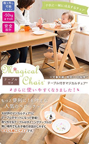 笑顔のダイニングベビーチェアー【マジカルチェアー(テーブル付き)】安心強度の三角形ベース プレミアム木製椅子 (ナチュラル色)