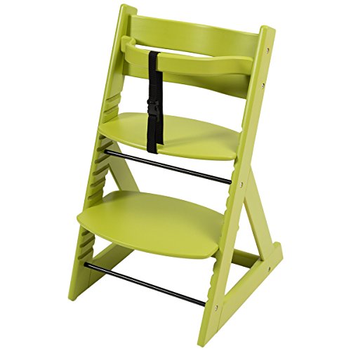 笑顔のダイニングベビーチェアー【マジカルチェアー】安心強度の三角形ベース プレミアム木製椅子 (ライムグリーン色)