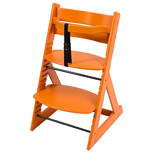 笑顔のダイニングベビーチェアー【マジカルチェアー】安心強度の三角形ベース プレミアム木製椅子 (オレンジ色)
