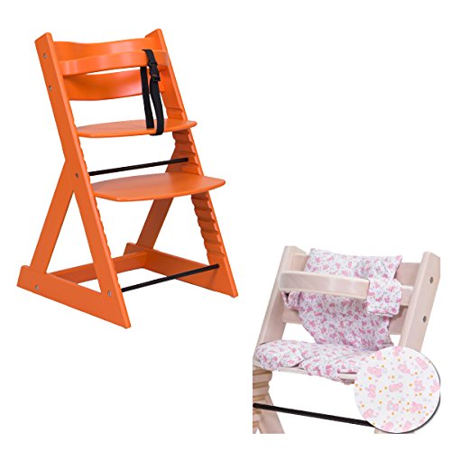 子供が笑顔になるダイニングチェアー 「マジカルチェアーセット(椅子本体・オレンジ色+専用クッション・ベアー柄)」 安全の固定脚部 安心のベビーガード
