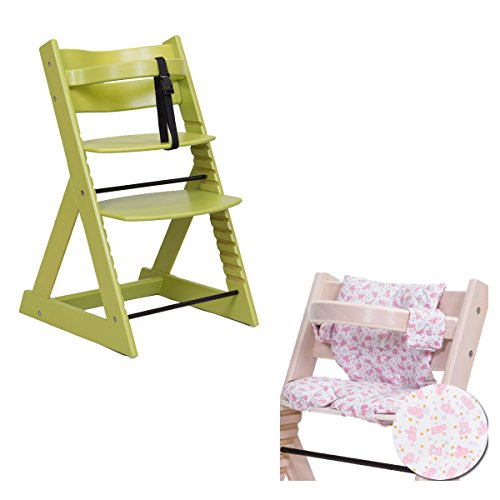 子供用ダイニングチェアー 「マジカルチェアーセット(椅子本体グリーン色+クッション ベアー)」 木製ベビーチェアー グローアップチェア 専用クッション付き オリジナルハイチェアー