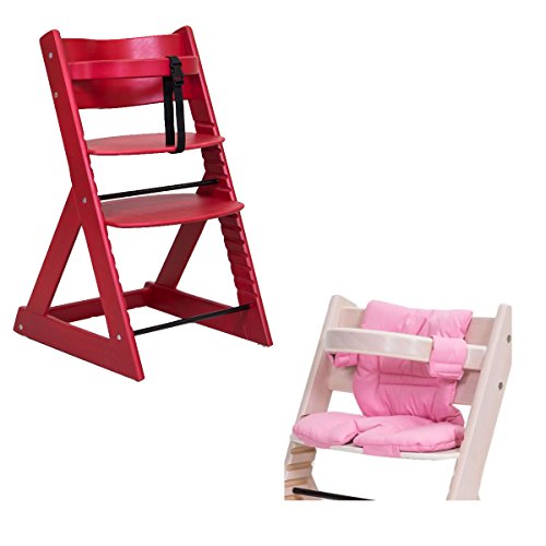 子供用ダイニングチェアー 「マジカルチェアーセット(椅子本体レッド色+クッションピンク色)」 木製ベビーチェアー グローアップチェア 専用クッション付き オリジナルハイチェアー