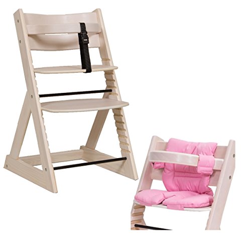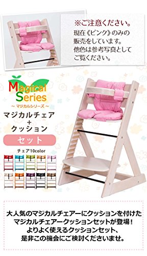 子供用ダイニングチェアー 「マジカルチェアーセット(椅子本体ホワイトウォッシュ色+クッションピンク色)」 木製ベビーチェアー グローアップチェア 専用クッション付き オリジナルハイチェアー