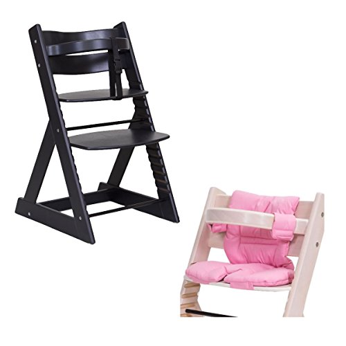 子供用ダイニングチェアー 「マジカルチェアーセット(椅子本体ブラック色+クッションピンク色)」 木製ベビーチェアー グローアップチェア 専用クッション付き オリジナルハイチェアー