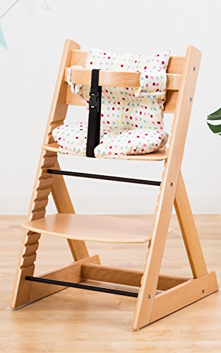 【人気ベビーチェア 笑顔のマジカルチェアー+専用クッション (お得2点セット)】 木製椅子 安心強度の三角形ベース 高さ調節可能 ふかふかクッションセット (チェア:ナチュラル色 クッション:小水玉レッド)
