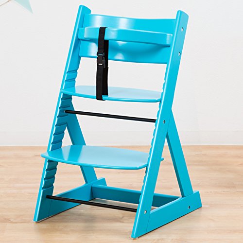 【ベビーチェア 高さ調節 完成品 ハイチェア 木製】こどもと一緒に成長するチェア 高さ調節可能! 安全ベルト付き ガタ付き防止アジャスター付き チェア色:ターコイズ