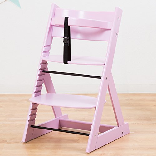 【ベビーチェア 高さ調節 完成品 ハイチェア 木製】こどもと一緒に成長するチェア 高さ調節可能! 安全ベルト付き ガタ付き防止アジャスター付き チェア色:ピンク