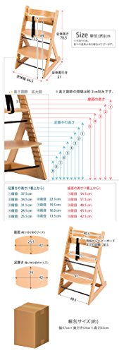 [Point-2] 高さ調整 :ダイニングの高さとお子様の成長に合わせて調節できるから、お子様と近い目線で向き合ってお食事ができます。座面・足置き共に3cm刻みでの調節が可能。成長と共に長く付き合えるチェアです。