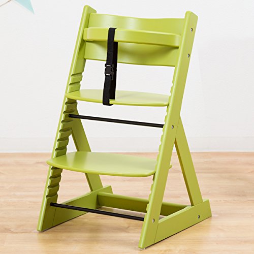 【ベビーチェア 高さ調節 完成品 ハイチェア 木製】こどもと一緒に成長するチェア 高さ調節可能! 安全ベルト付き ガタ付き防止アジャスター付き チェア色:ライム