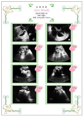 ★忙しいママに変わって妊娠中の思い出、超音波写真の保存をお手伝いします。プロのデザイナーがつくる思い出に残るおしゃれなデザインです。かわいい赤ちゃんの記念にぜひご利用下さい ★バリュータイプとは・・・市販のアルバムに入れたり、額に入れて飾ったり、ご購入後の保存はお客様のアイデアで。台紙のないお値打ちなタイプです。 ★注意事項★こちらのアルバムはお客様より超音波写真をお預かりし、アルバムにお仕立てするオーダーメイド商品です。当店よりお仕立券を発送させていただきます。お届けまでお写真お預かりから2週間前後です。オーダーメイド商品の為、返品不可です