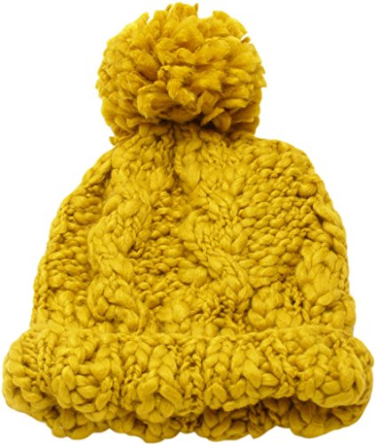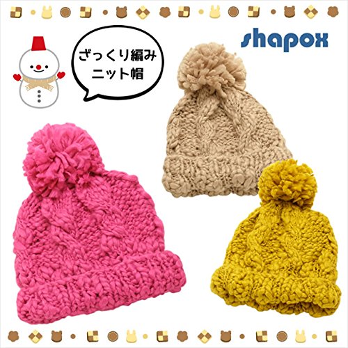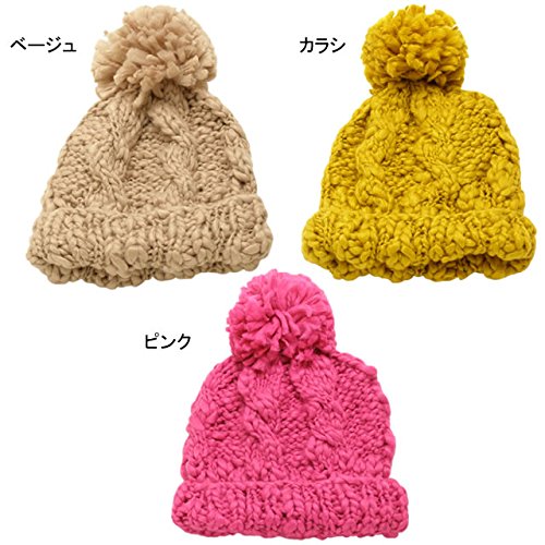 ざっくり編んだポンポン付きニット帽