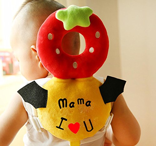 【shuave】 赤ちゃん ごっつん防止 ケガ防止 頭の保護 乳幼児用 可愛い 衝撃防止 リュック 帽子 (S, いちご 赤)