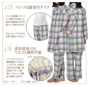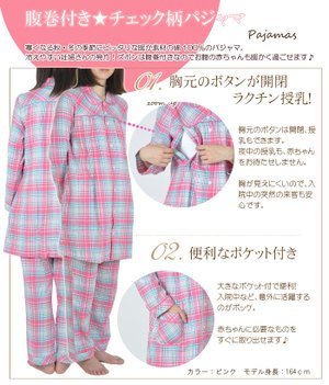 シルクル マタニティー パジャマ 腹巻付チェック柄パジャマ(授乳口付)