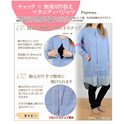 シルクル マタニティ パジャマ :前開き・長袖 チェック×無地切り替えマタニティパジャマ