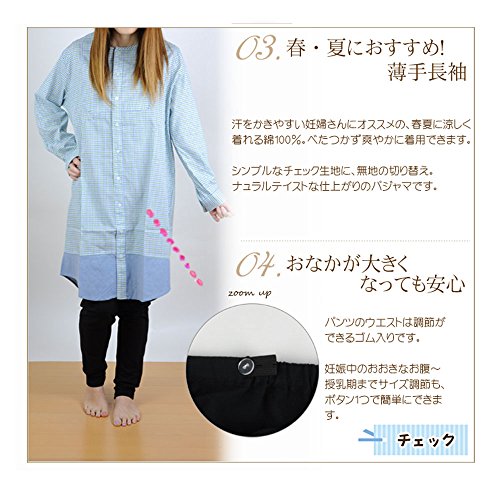 シルクル マタニティ パジャマ :前開き・長袖 チェック×無地切り替えマタニティパジャマ