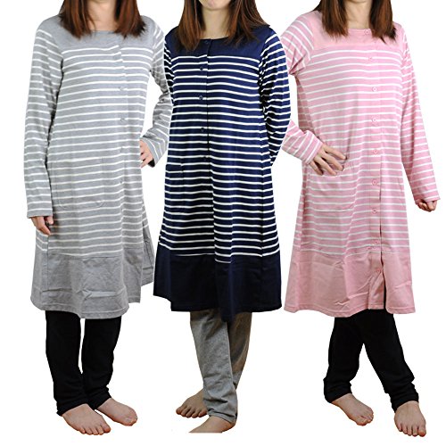 シルクル マタニティ パジャマ :前開き・長袖 チェック×無地切り替えマタニティパジャマ